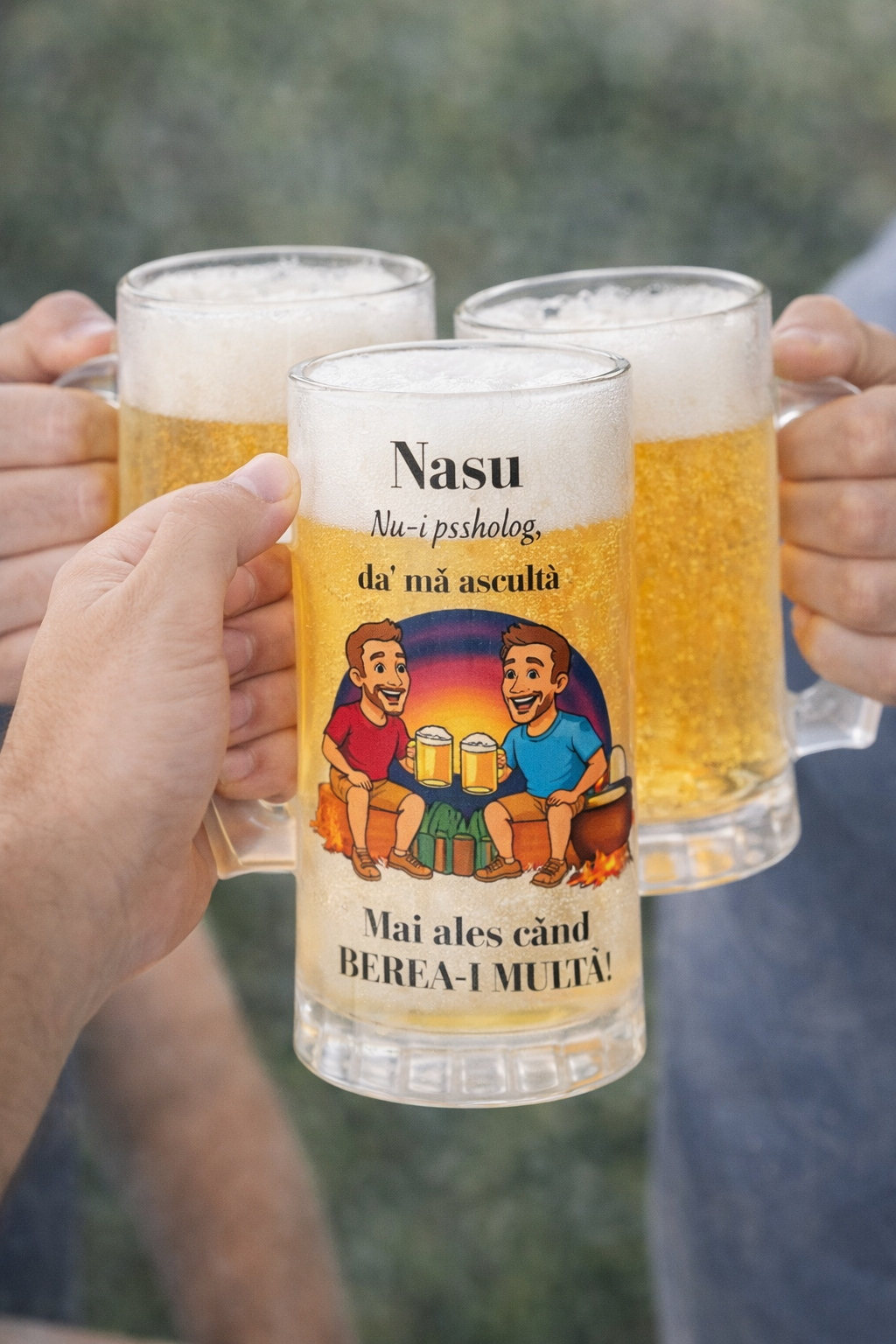 Fie că o cumperi pentru tine sau pentru cineva drag, această halbă de bere personalizată transformă orice toast într-un moment special.